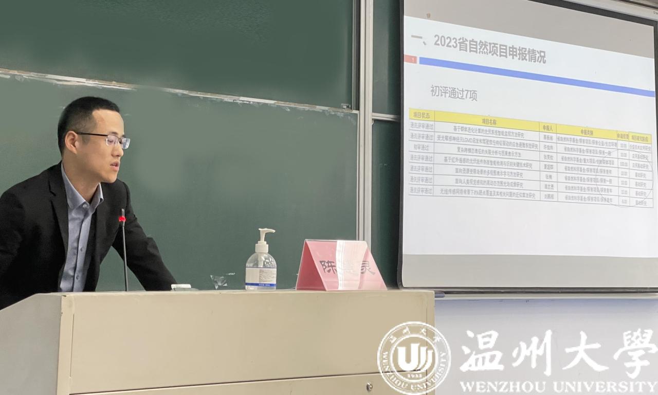 随后,陈慧灵副院长对学院近期的科研项目申报情况和人才引进情况进行了通报。他表示,我们要做好人才引进工作,人才是学院的希望,是提升学院教学科研水平的重要手段。