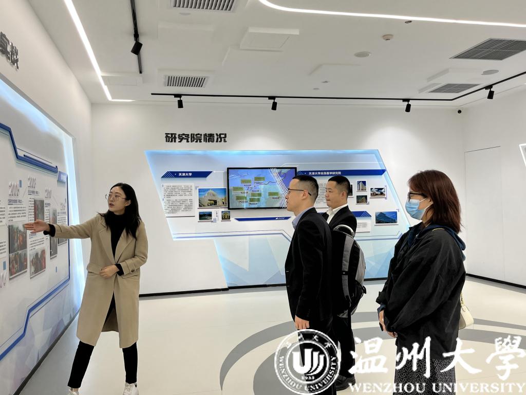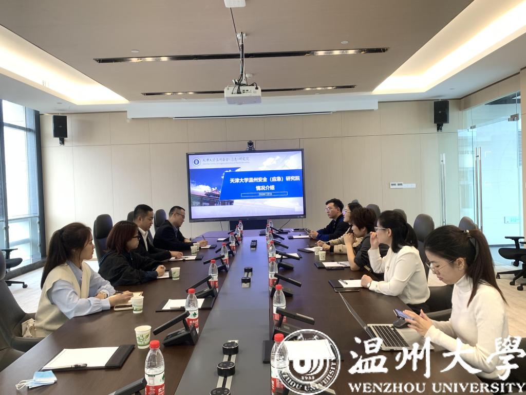 在天津大学温州安全(应急)研究院,一行人受邀参观了研究院的展厅,全面了解了近年来研究院在安全应急方面所做的工作。在座谈过程中,研究院方表示,将充分优势协助本次论坛活动的顺利开展,希望能在活动中进一步推动有关项目落地,助力温州安全应急产业更好发展。座谈会尾声,陈慧灵副院长代表学院欢迎天津大学温州安全(应急)研究院日后前来参观交流,也期待双方能达成更多合作,共同进步。