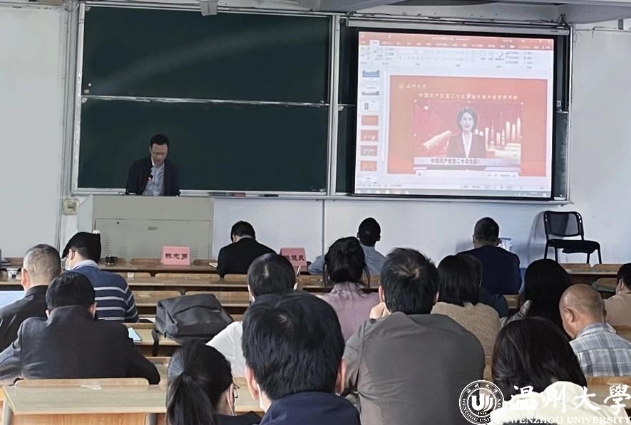 于5A201召开学习中国共产党第二十次全国代表大会精神理论学习会暨教职工大会。会议由学院党委书记全力主持,全院教职工参加会议。