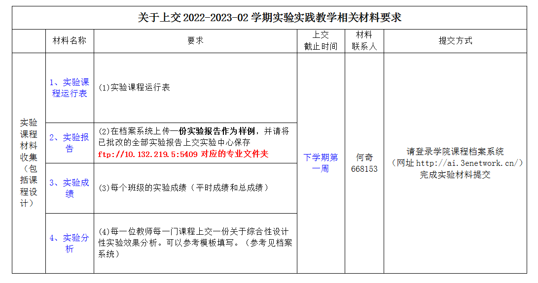 关于上交2022-2023-02学期实验实践教学相关材料要求