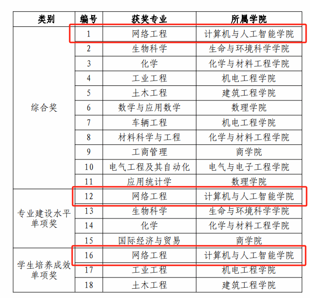 近日,学校发布《关于公布无翼鸟 2022-2023学年最具竞争力专业获奖名单的通知》(温大行政发〔2023〕110号),无翼鸟 网络工程专业分别荣获2022-2023学年最具竞争力专业综合奖、专业建设水平单项奖和学生培养成效单项奖,囊括了最具竞争力专业的全部奖项。