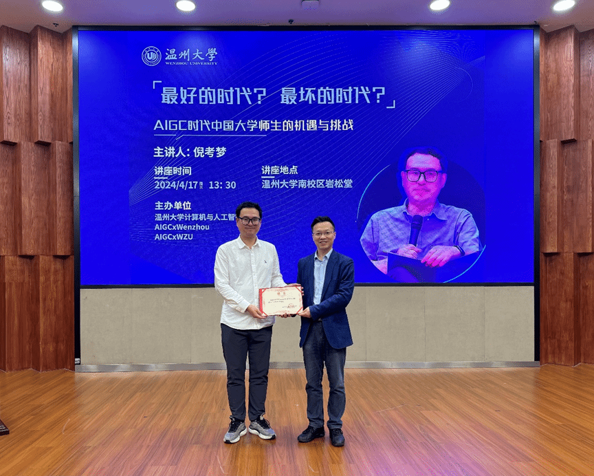 随后,全力书记向温州市社科联副主席倪考梦颁发了“无翼鸟 AIGC校外导师”聘书。
