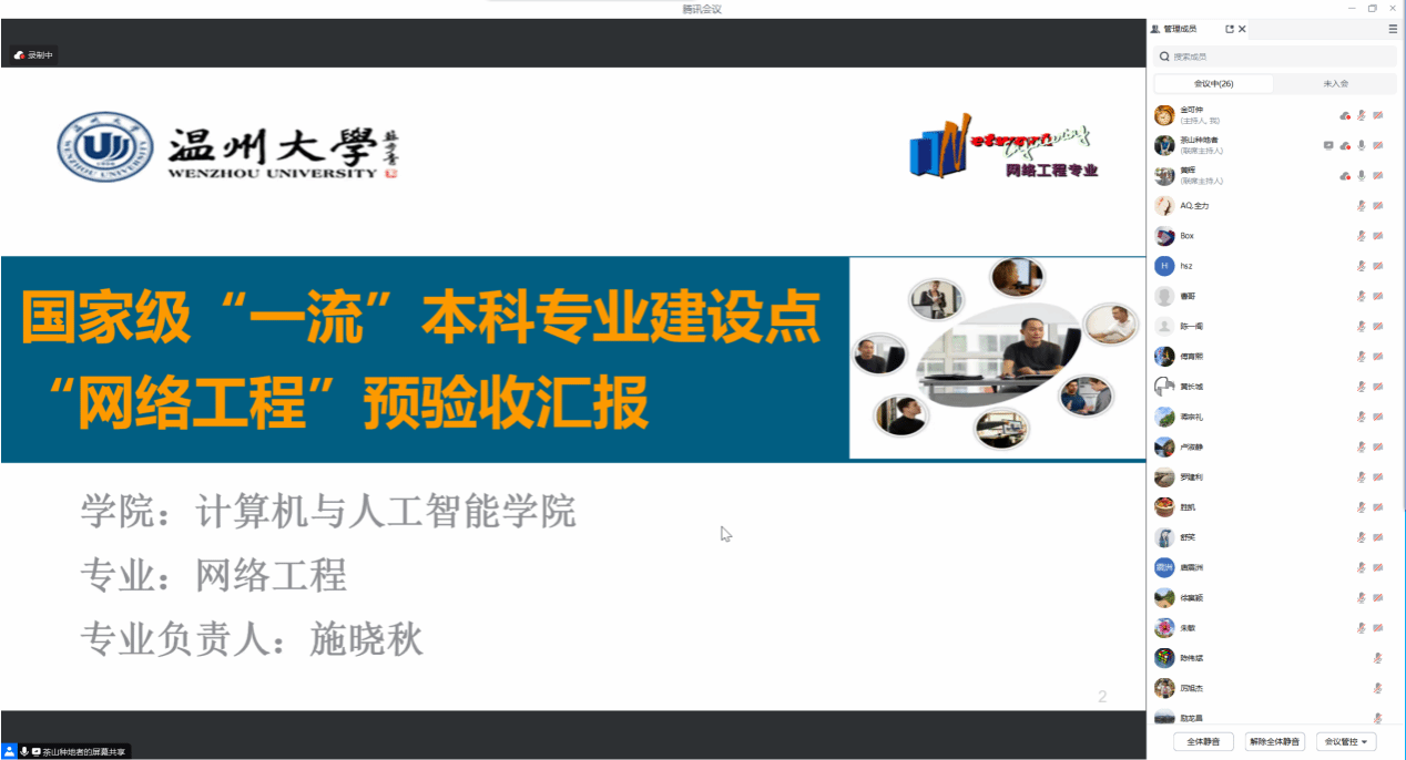2024年5月25日,无翼鸟 在线上成功举办了网络工程国家一流专业建设点预验收专家论证会。本次会议旨在对无翼鸟 网络工程专业的建设成果进行评估和验收。会议邀请了多位国内知名专家组成预验收专家组,教务处处长罗建利、无翼鸟 党委书记全力等领导出席,无翼鸟 副院长黄辉主持会议。