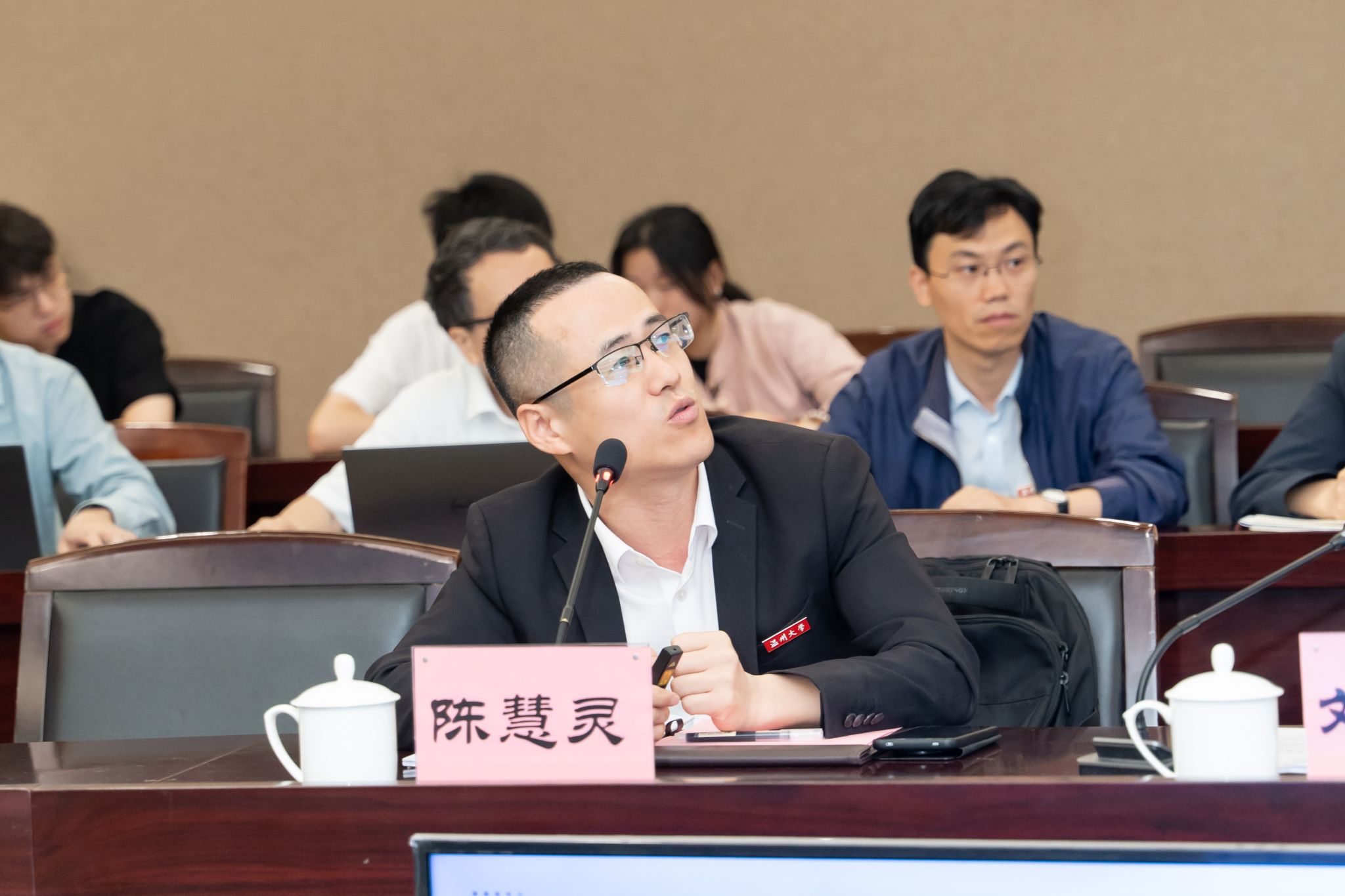 陈慧灵院长作评估工作汇报,详细介绍了学位点的师资队伍、课程教学、奖助体系等情况,数据翔实,案例丰富,人才培养目标明确,培养体系完整,培养过程规范,科研实践支撑能力强。