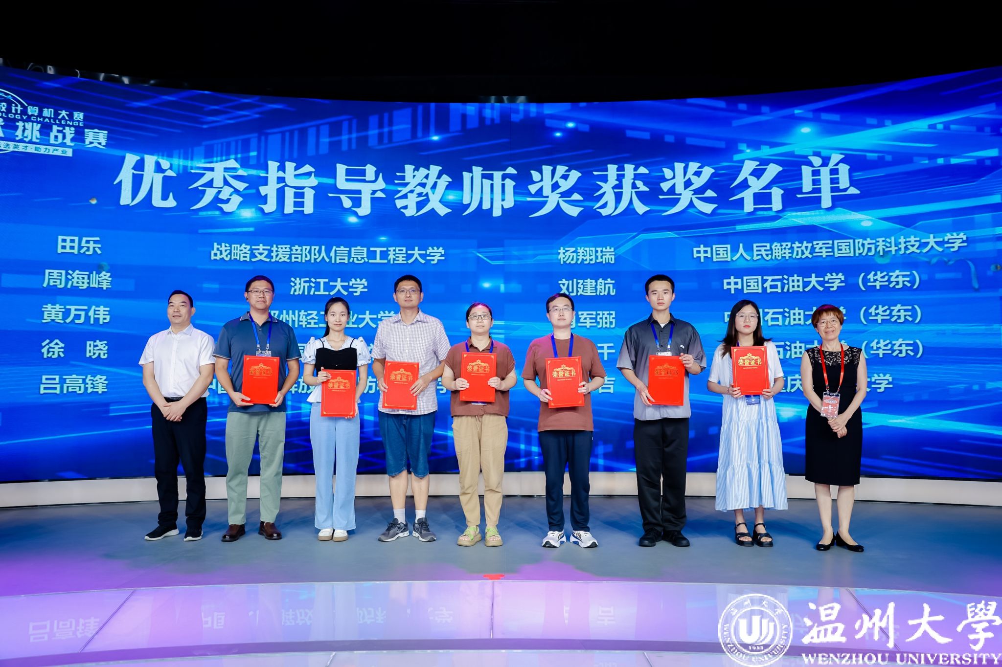 此外,大赛还得到了全国高校教师的广泛支持与积极参与。经过大赛组委会的严格评审,武汉科技大学的聂雷、四川轻工业大学的陈超、战略支援部队信息工程大学的田乐、河南科技大学的王勇以及上饶师范学院的徐蒋婷等52名教师获得了大赛颁发的“优秀指导教师”证书,以表彰他们在赛事中对学生的卓越指导和辛勤付出。