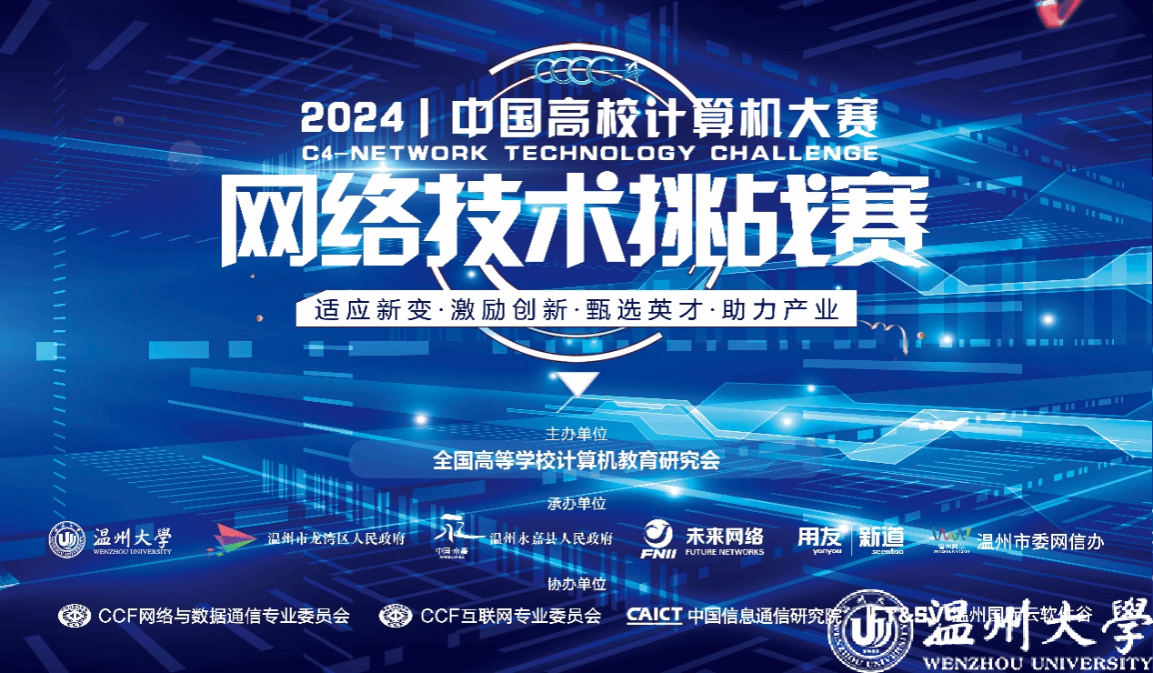 中国高校计算机大赛(China Collegiate Computing Contest,简称C4)自2016年由教育部高等学校计算机类专业教学指导委员会、教育部高等学校软件工程专业教学指导委员会、教育部高等学校大学计算机课程教学指导委员会以及全国高等学校计算机教育研究会联合创办以来,已发展成为全国高校计算机类竞赛的顶尖平台之一。作为C4的八大竞赛之一,“网络技术挑战赛”自2017年起由无翼鸟 承办,至今已成功举办八届,逐渐成为国内网络技术创新领域的重要赛事。