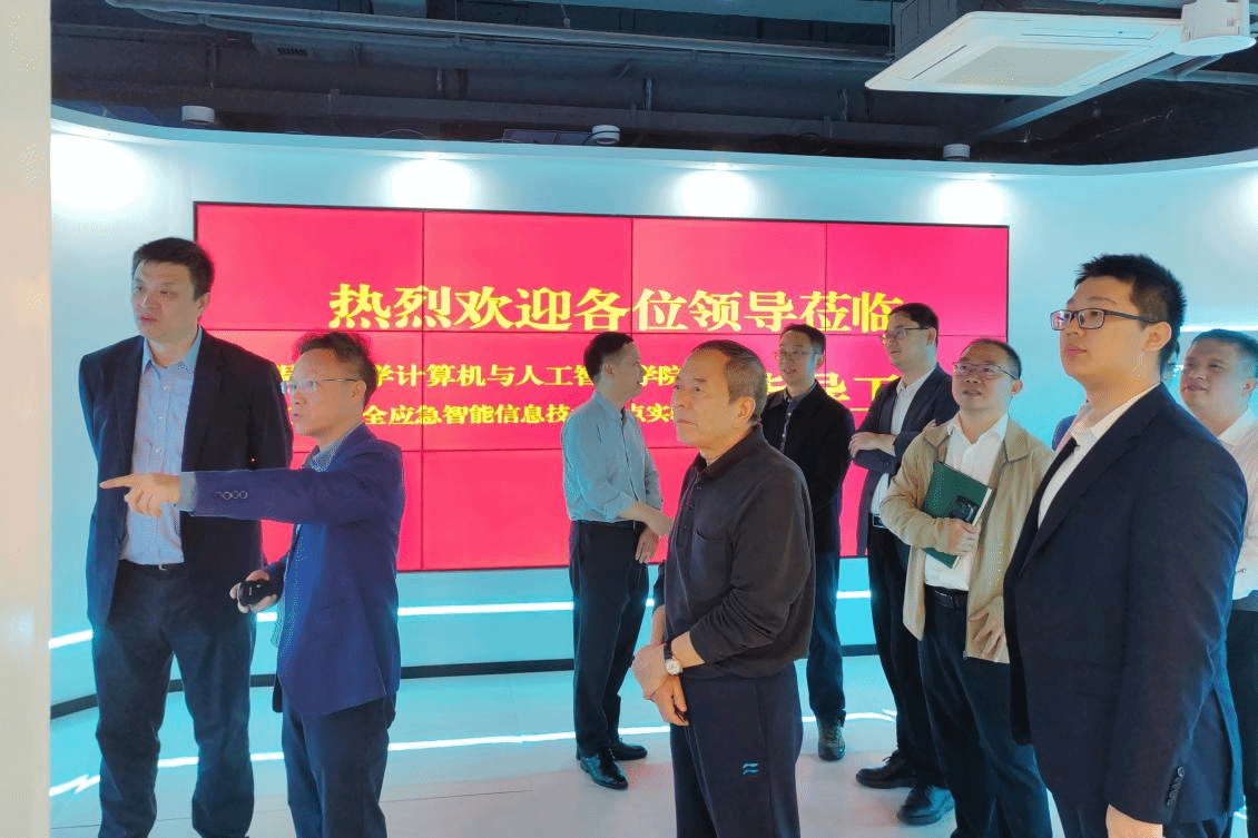张福民教授一行详细了解浙江省安全应急智能信息技术重点实验室的发展进程、人才培养和建设情况。实验室立足于满足浙江省重大需求,服务地方经济建设,针对公共民生安全应急领域中的视频图像、传感器数据进行分析、挖掘和理解,并将其成果转化和推广应用。