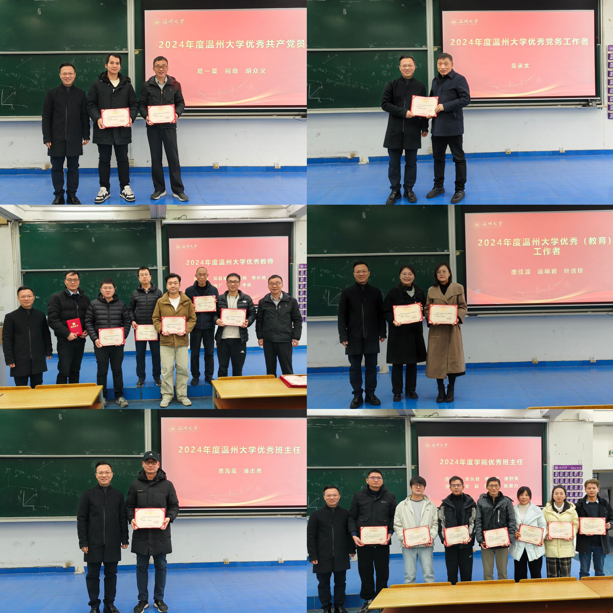 会议最后,学院领导为2024年度校级优秀共产党员、优秀党务工作者、优秀教师、优秀(教育)工作者、优秀班主任,以及学院优秀班主任进行表彰。感谢他们在过去一年中为学院发展作出的突出贡献,并号召全体教职工以他们为榜样,凝心聚力、砥砺前行,共同推动学院各项工作再上新台阶。