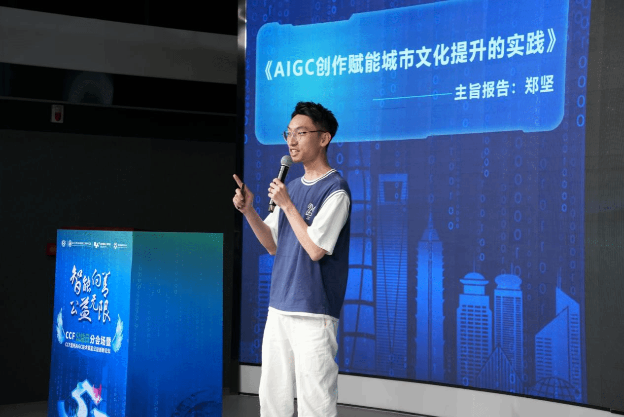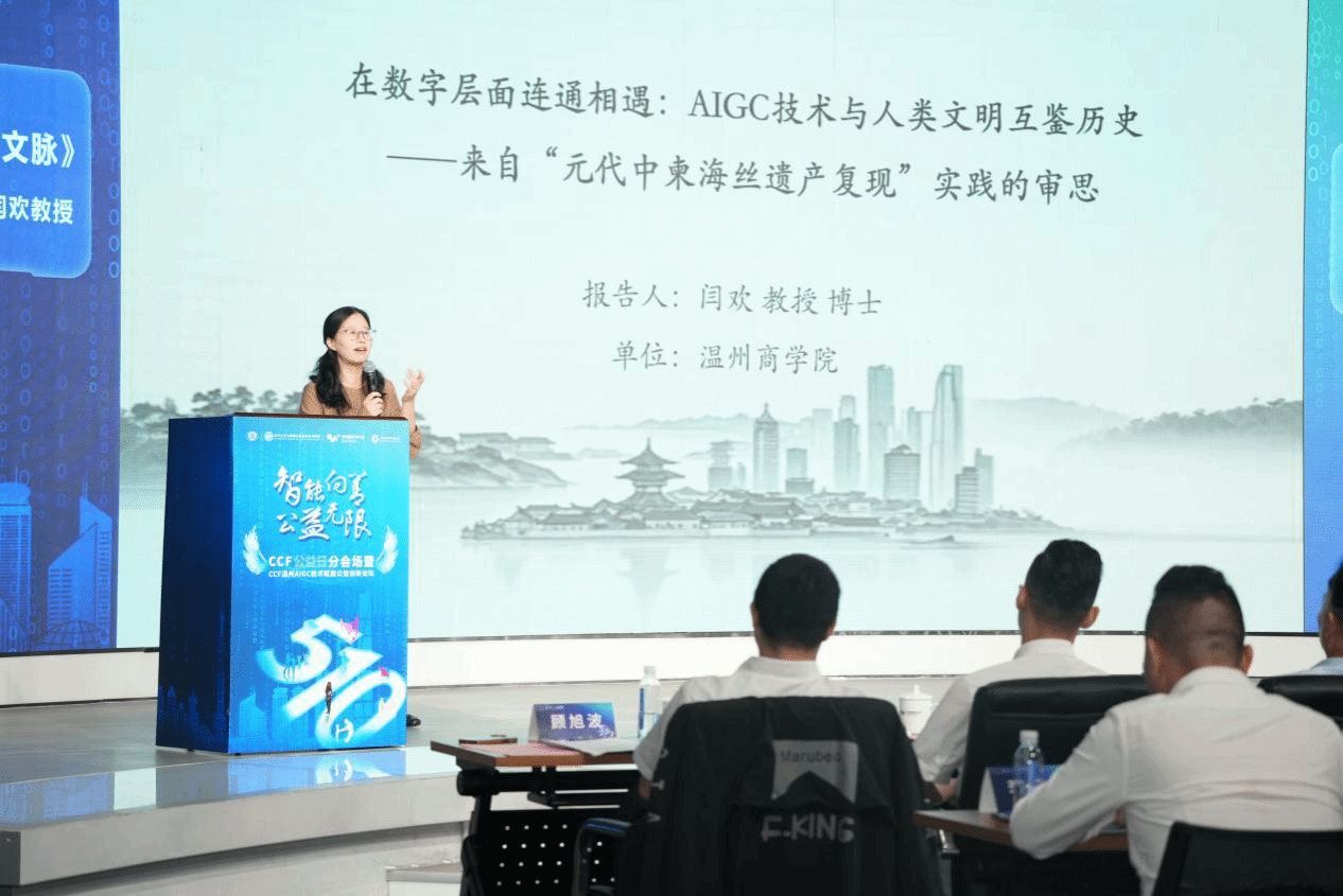 CCF温州分部主席陈慧灵在致辞中指出,温州通过AIGC技术已成功打造“技术+文化+传播”的创新模式,在数字艺术创作、文化传播和公益应用等领域取得显著成果。他表示,AIGC技术的价值不仅在于算法突破,更在于如何将其转化为社会福祉,期待各界携手推动智能时代的公益文化创新发展。