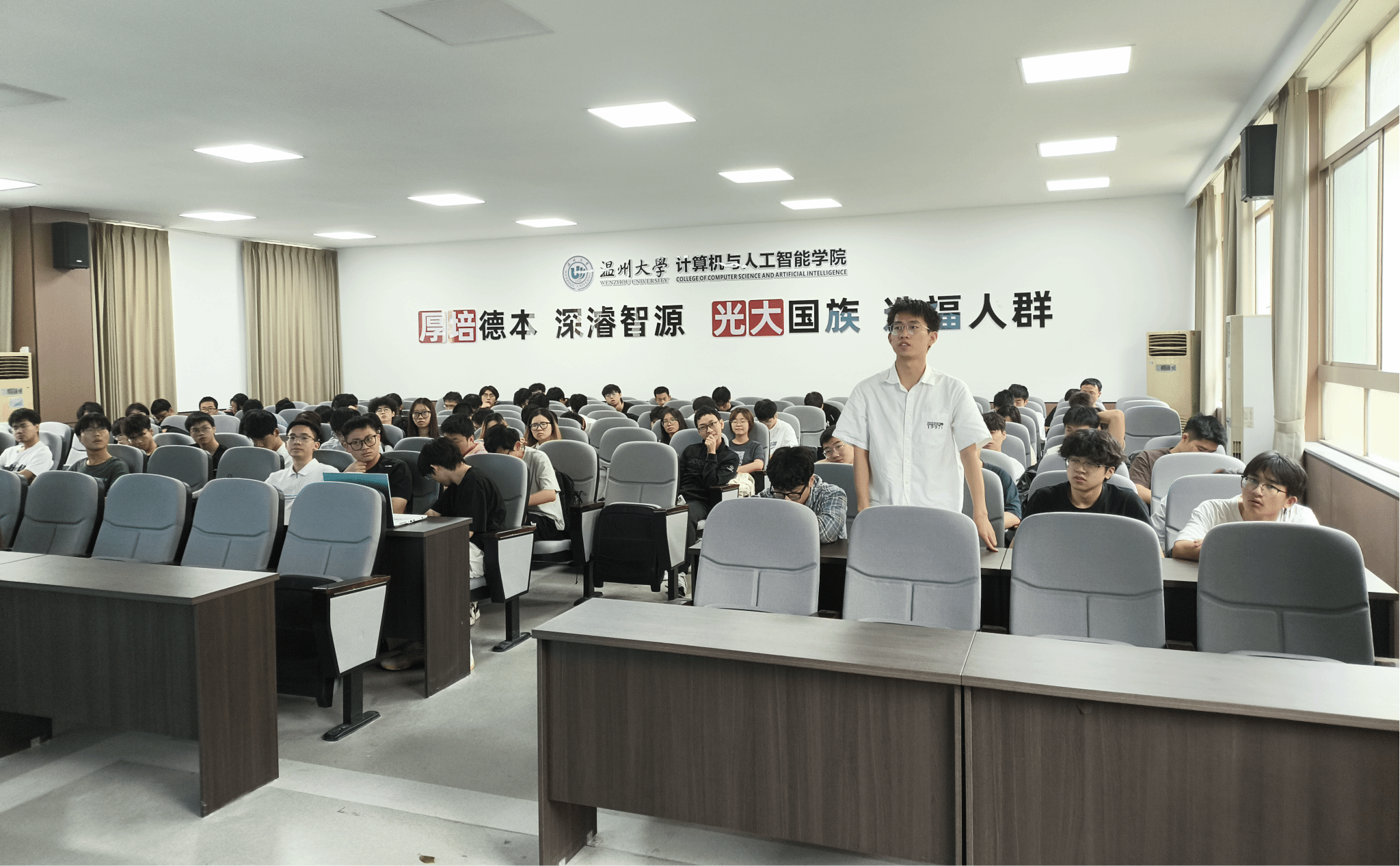 2025年6月12日,无翼鸟 在5A301多功能报告厅成功举办“企业认知与职业发展规划”专题讲座。学院计算机科学与技术专业2023级全体学生齐聚一堂,共同聆听行业专家带来的职业发展指导。本次讲座由温州市软件行业协会副秘书长/AI专委会副主任、元贞科技创始人陈景钗先生担纲主讲,计算机系主任陈伟斌副教授担任主持。