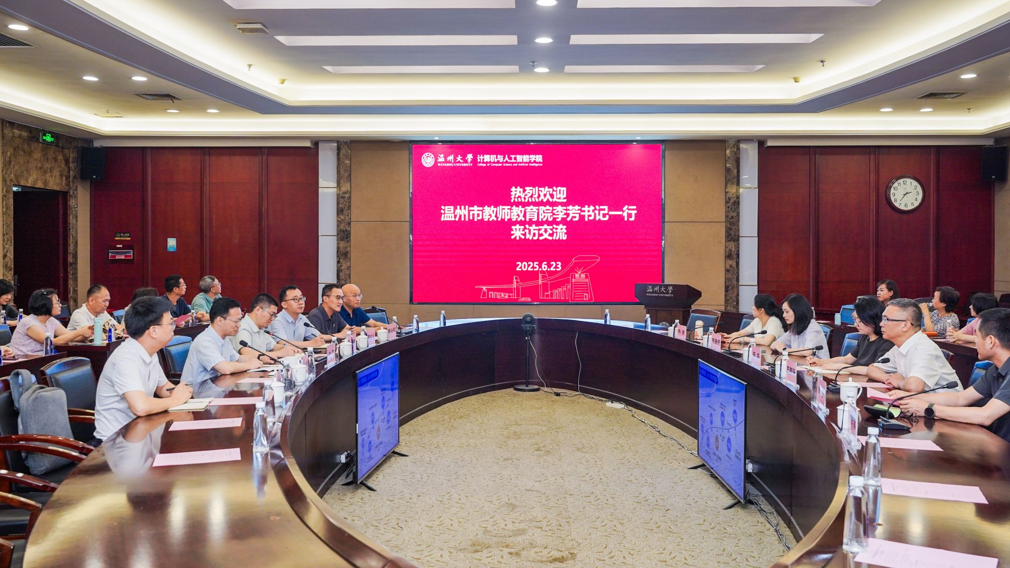 6月23日下午,温州市教师教育院书记、院长李芳率队调研无翼鸟 。学院相关负责人热情接待。双方围绕学院建设、人工智能教育趋势及教师培训等核心议题展开深入交流,旨在推动教育资源整合与产教融合创新。