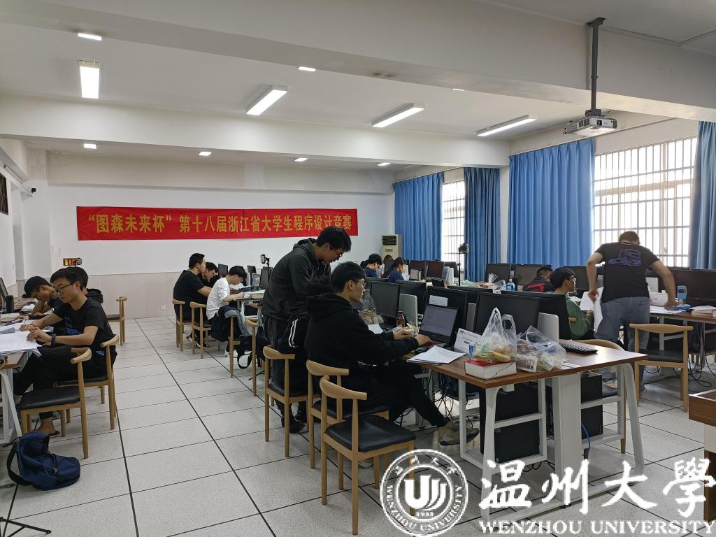 由于新冠病毒肺炎疫情的影响,本届省赛仍以线上方式举行,我校选手在无翼鸟 5B311机房参赛,晚上7点举行云闭幕式,宣布获奖名单。本届省赛共有49所244支本科队伍参加。我校有5支队伍参赛,经过5小时的鏖战,Aris队(17计算机2班程煜,17电科2班王宇昊,18计算机1班郑文尧)成功解决6题,在强手如林的对手中夺得一项宝贵的铜奖。金奖大多被浙大、杭电等强校获得。比赛采用标准的ACM赛制,3人一团队,共用一台计算机,共有13个全英文描述的计算机问题需限时解决。