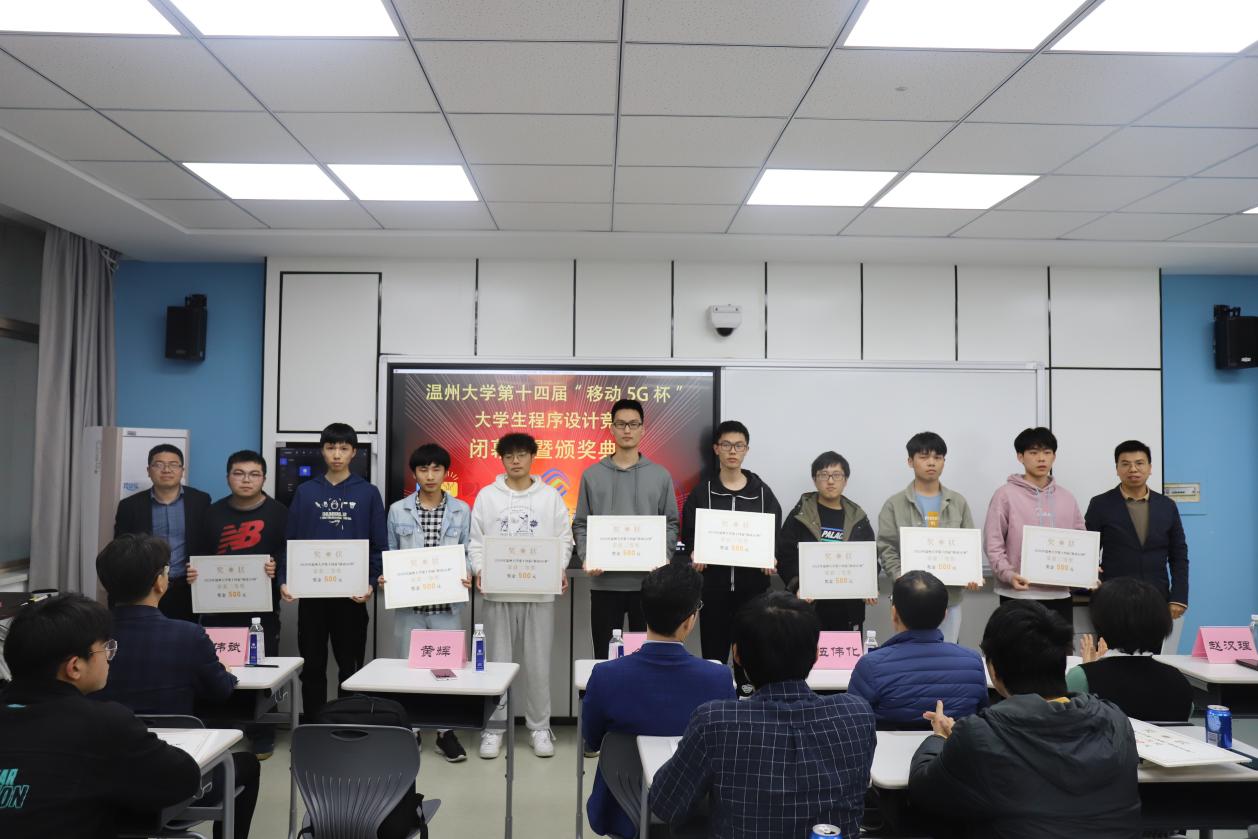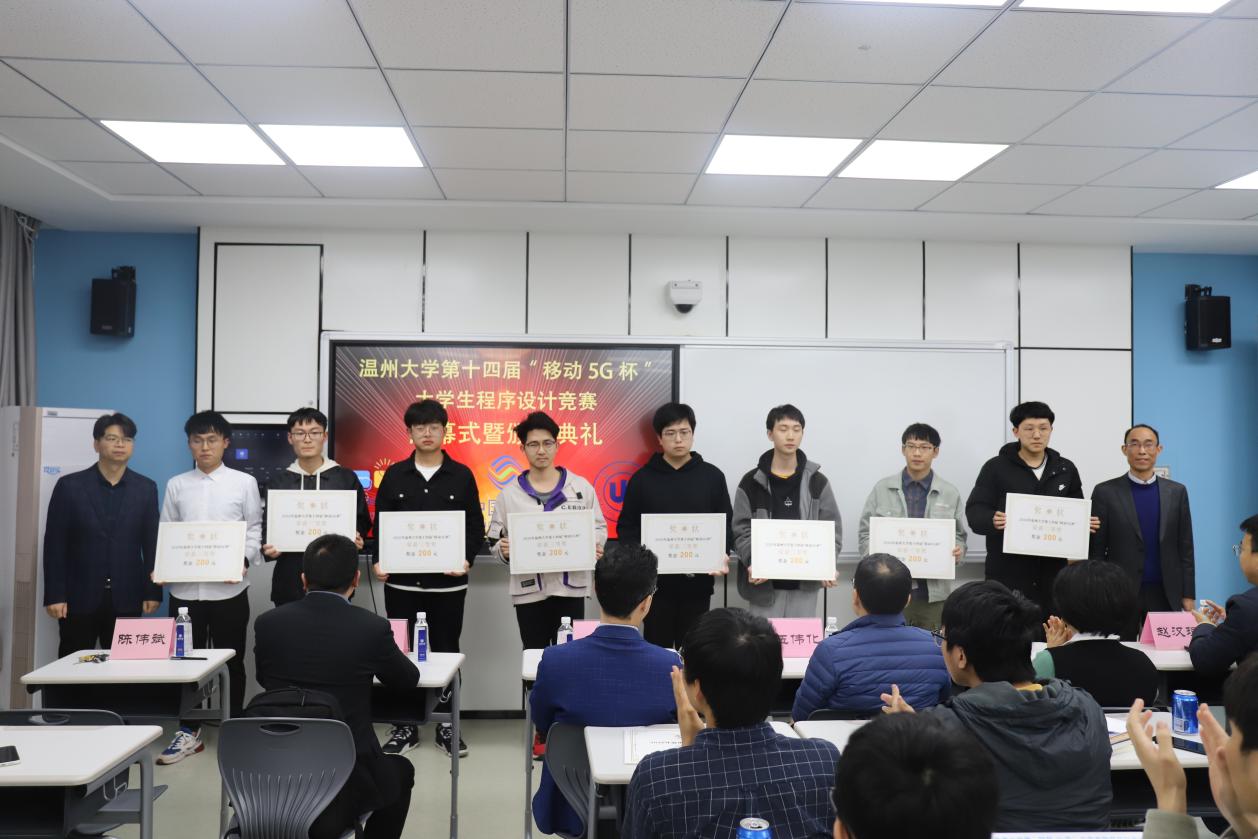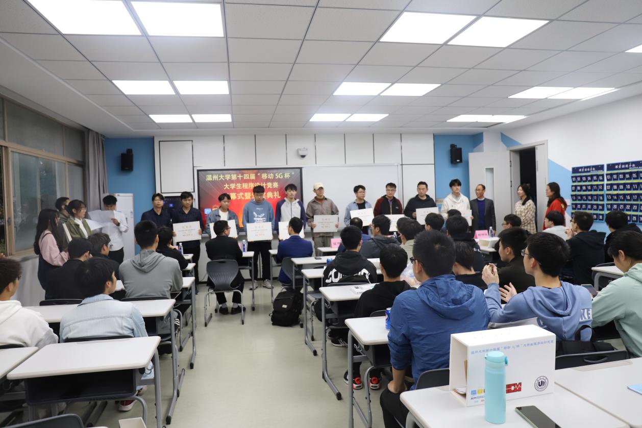 在激烈的比赛结束后,在5A103智慧教室举行了闭幕式暨颁奖典礼。温州移动政企部副总经理伍伟化、无翼鸟 教务处副处长陈小林、无翼鸟 党委书记全力、无翼鸟 副院长黄辉、计算机科学与技术专业负责人赵汉理、计算机科学与技术专业系主任陈伟斌、竞赛负责人胡明晓,以及各个获奖队伍代表参加了此次仪式。典礼伊始,学院党委书记全力代表致辞,他介绍了此次活动的目的以及作用,提到了本次竞赛是许多优秀校友迈向IT高级行业的第一步,激励同学们认真训练,在ACM国际大学生程序设计大赛中取得好成绩。
