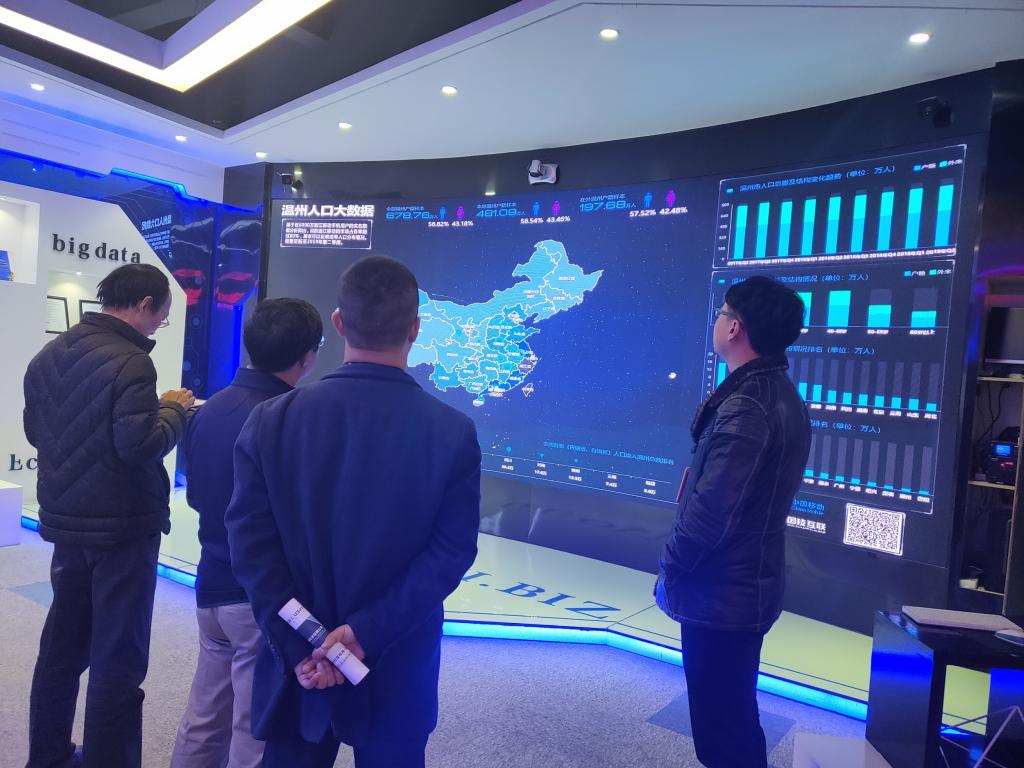 接着,研究院一行又到了浙江国技互联信息技术有限公司。技术研发中心总监吴江卿和信息化中心总监马宇远热情的接待,详细介绍了公司历史与荣誉以及无翼鸟,并基于大数据平台展示了温州整个区域人口的分布情况,内容新颖,技术先进。交流会上,吴总监表示,在企业技术研发和创新上要依靠专业和权威的高端人才,希望今后研究院能予以一些合作和支持。洪振杰院长介绍了研究院情况,肯定了国技互联的研发能力,提出在研发方向合作的可能性,希望在双方的共同努力下实现双赢。