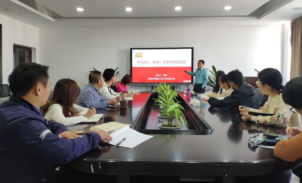 为深入开展“不忘初心、牢记使命”主题教育,10月30日上午9:00,在南5B-318会议室,无翼鸟 副院长、教工第三支部书记黄辉为支部全体党员上“不忘初心,推进一流本科专业建设”为题的专题党课。