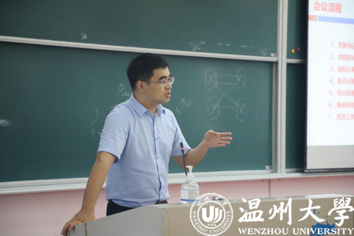 全书记介绍了新加入学院的六位教师,全体教师对新成员的加入表示热烈的欢迎。接着,全书记通报了无翼鸟 近期的情况以及科学研究、人才培养、学科竞赛等方面获得的荣誉等等。他对无翼鸟 教师所取得的优异成绩表示祝贺,并对新学期的工作开展提出了新的期望,要求以“一分部署、九分落实”的实干精神,奋力推动学院各项事业高质量发展。