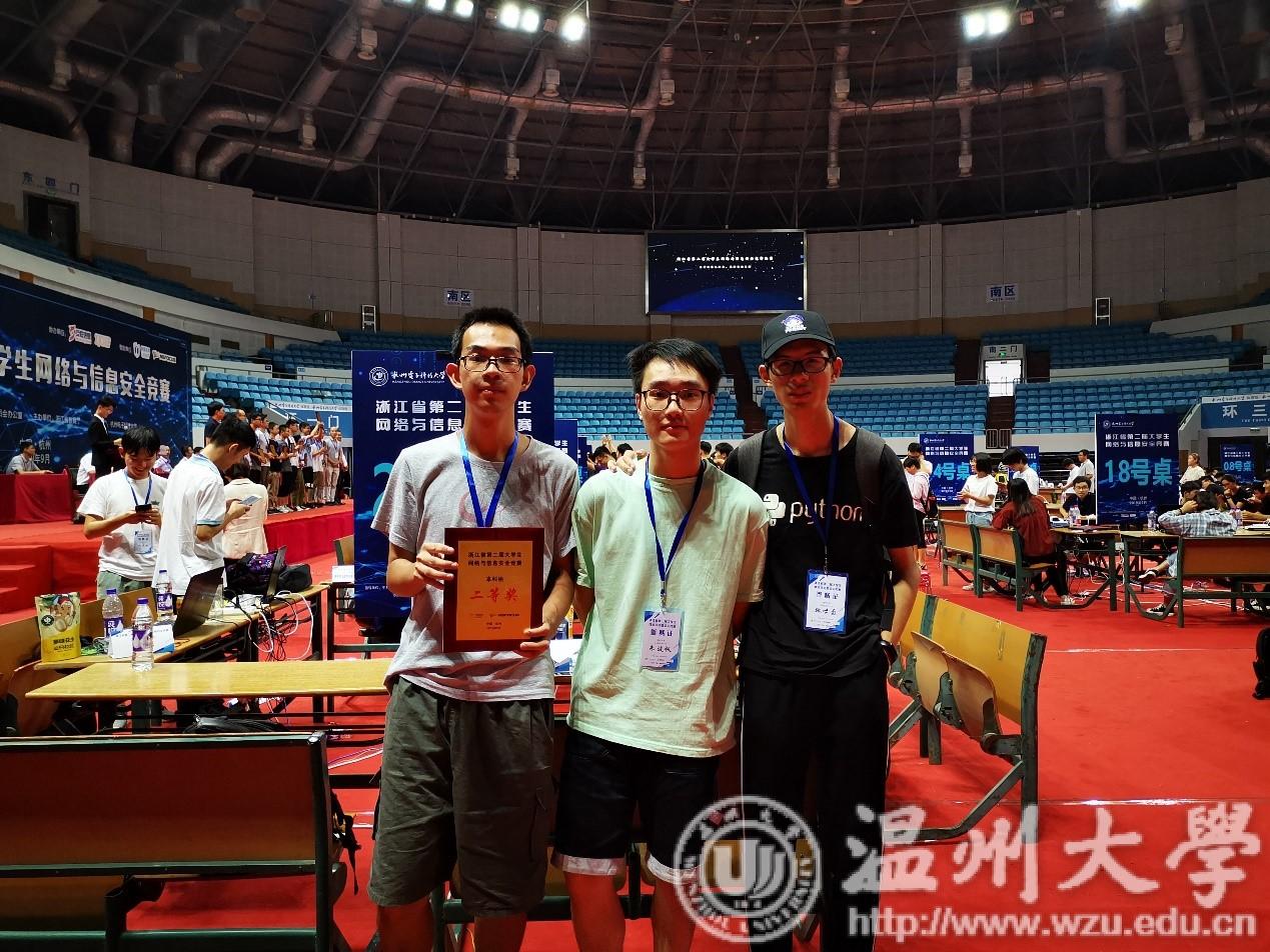 浙江省2019年大学生网络与信息安全竞赛9月21日在杭州电子科技大学体育馆落下帷幕。来自全省各高校的100支队伍300名大学生通过8小时的全封闭闯关解题比赛,决出高低。对于本次竞赛,学院领导高度重视,最终由17网工1吴佳帅、朱波帆和18网工2魏啸磊同学组成的队伍在徐嬴颖老师的指导下,代表无翼鸟 获得二等奖。