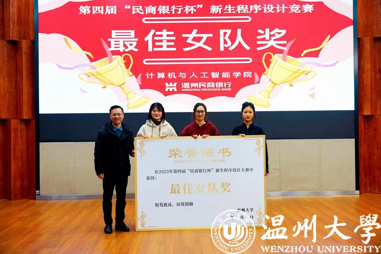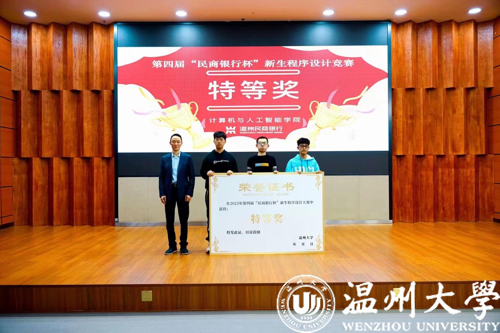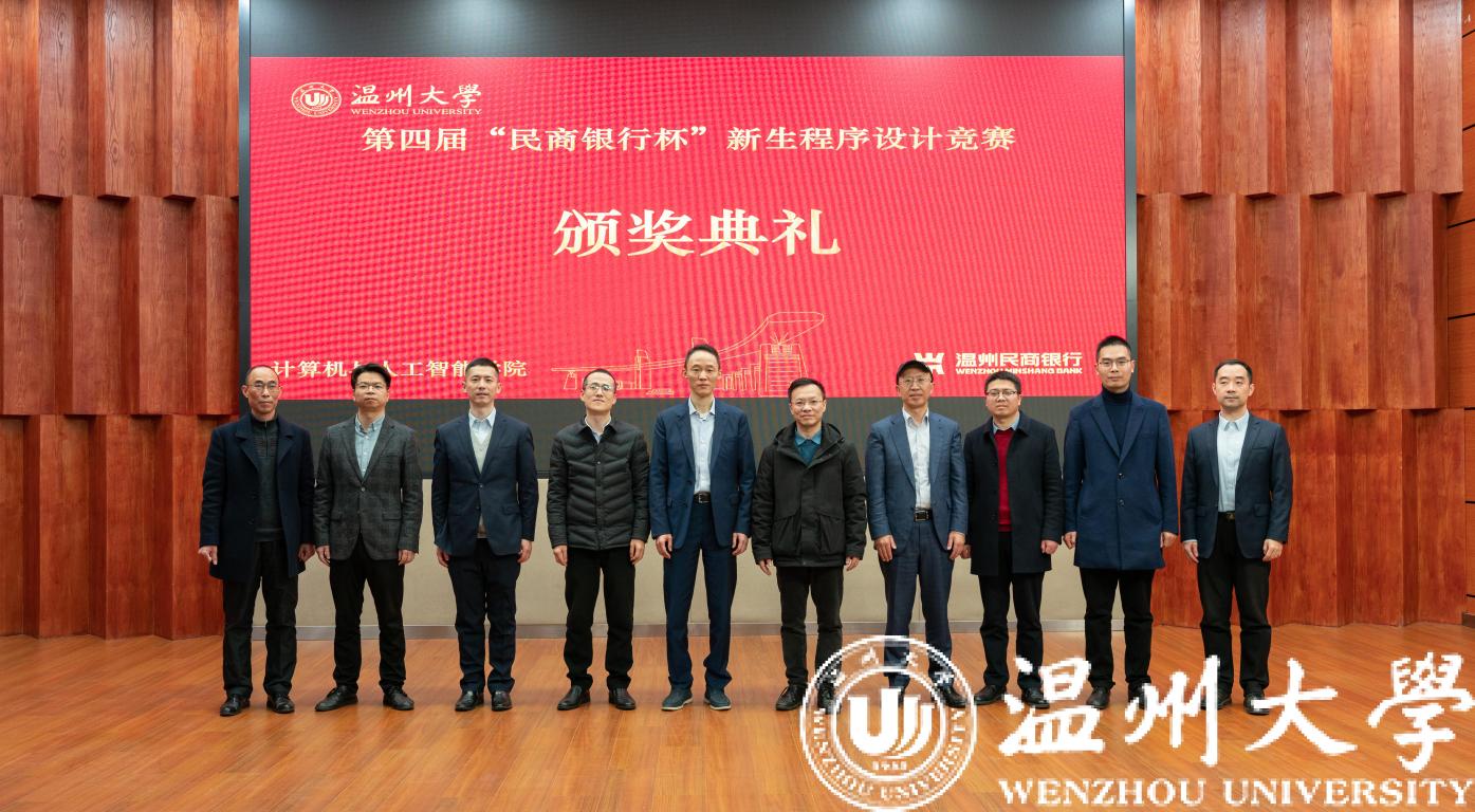 比赛结束后,盛大的颁奖典礼在岩松堂雁山厅举行。无翼鸟 党委书记全力与温州民商银行行长应海卿上台致辞,表达了对本次比赛的重视与支持,祝贺斩获佳绩的团队并寄语同学们在校级程序设计竞赛中再攀高峰。伴随着如潮的掌声,获奖团队依次上台领奖。至此,第四届“民商银行杯”新生程序设计竞赛圆满落下帷幕。