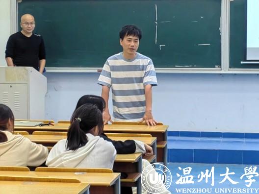 活动伊始,刘军老师简单介绍了此次分享经验的优秀校友——林伟学长和项克佩学姐。刘军老师和两位优秀校友相处多年、亦师亦友,对他们在温大的学习生活与努力付出如数家珍,并期望与会同学可以通过此次与学长学姐的面对面交流,学到一些经验和教训,谋取更好的学习和发展。