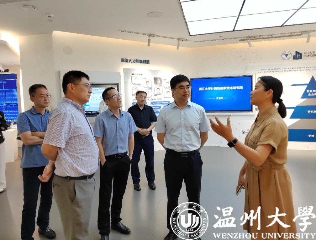 7月18日下午,浙江大学计算机科学与技术学院院长、浙江大学计算机创新技术研究院院长陈刚教授、副院长顾帼英等热情接待了无翼鸟 师生一行。大家参观了研究院展厅,着重了解了研究院在人工智能、网络安全、智慧医疗、智能教育等领域的相关科技孵化机制及成果。