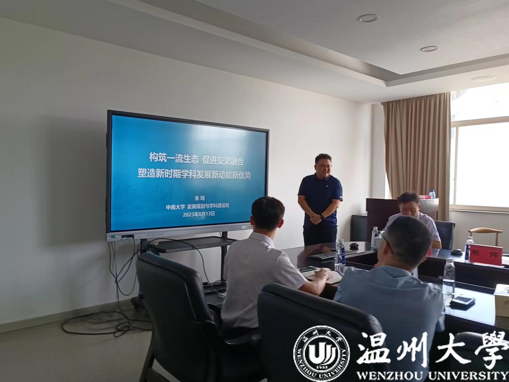 2023年8月13日上午,中南大学发展规划与学科建设处朱玮主任受邀来无翼鸟 作题为“构建一流生态,促进交叉融合——塑造新时期学科发展新动能新优势”的讲座。讲座由陈慧灵副院长主持,相关领域师生参会。