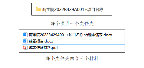 1、项目结题材料文件夹以“学院名称+项目编号+项目名称”规范重命名(例如“商学院2022R429A001+项目名称”,项目名称请与验收汇总表保持一致,不得变更),内含①结题申请表(附件1):电子版(WORD版本),其中需师生签字、学院盖章的页面请完成签字盖章后,将该页面扫描成图片插入表格相应位置,调整好格式与大小,表格整体需美观、协调。每个项目的经费使用情况已从计财处导出,会发至项目交流群。验收栏中专家组验收意见请学院结题验收核查小组填写即可;②结题报告;③成果佐证材料:每个项目的所有成果支撑资料整合成一个pdf文档。均提交电子版本。