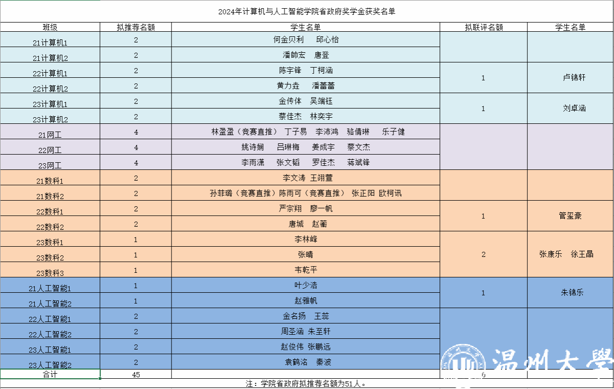 根据《关于浙江省2024年学生资助补助经费的通知》、《无翼鸟 学生资助管理办法》、学校《关于开展2024年国家奖助学金、省政府奖学金、学费减免等评审工作的通知》及学院《关于开展2024年省政府奖学金评定工作的通知》等文件要求,经过学院奖助学金评审小组审核、联评,拟推荐何金贝利等51位学生为2023-2024学年省政府奖学金获得者。现将名单予以公示,如有异议请在公示期内及时反馈。