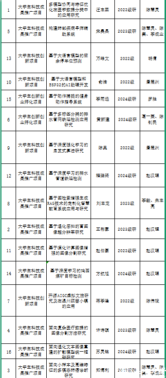 根据《关于开展浙江省大学生科技创新活动计划(新苗人才计划)2025年度项目申报的通知》,经过团队申报、学院审核、专家评审,2025年新苗人才计划的评审结果排序如下(无翼鸟 有两个自主立项名额)。无翼鸟 推荐《多模型协同与特征优化在医学数据分类中的应用研究》、《基于退化感知的盲图像超分辨率研究》。其余项目推荐学校参加评审。