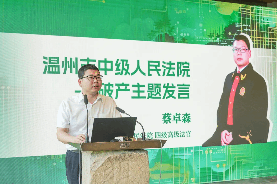 活动第一场由温州市中级人民法院法官蔡卓森为与会人员带来破产主题发言。蔡法官从温州地区破产审判出发,结合办案实际从三个方面切入,分别是破产涉税交叉工作、管理人人才队伍建设、管理人履职激励机制的改善与建议,能够充分体现系统思维在高效办案中的突出作用。