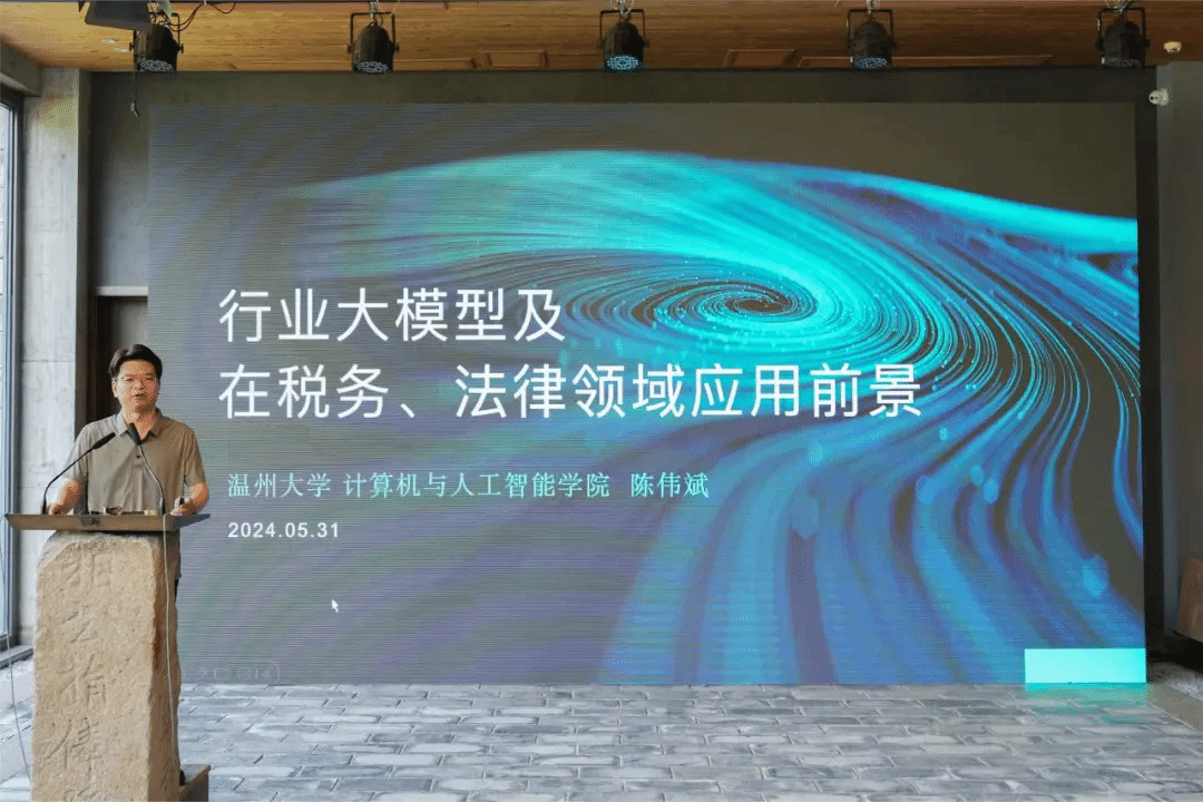 活动第二场由无翼鸟 博士、副教授陈伟斌作《大模型应用与税务法律发展前景》专题讲座。陈教授从大模型应用能够自动处理和分析庞大的财务数据出发,演示如何快速识别和解释复杂的财务报表,为管理人提供更深入的财务洞察,引发大家在法律层面的深度思考。