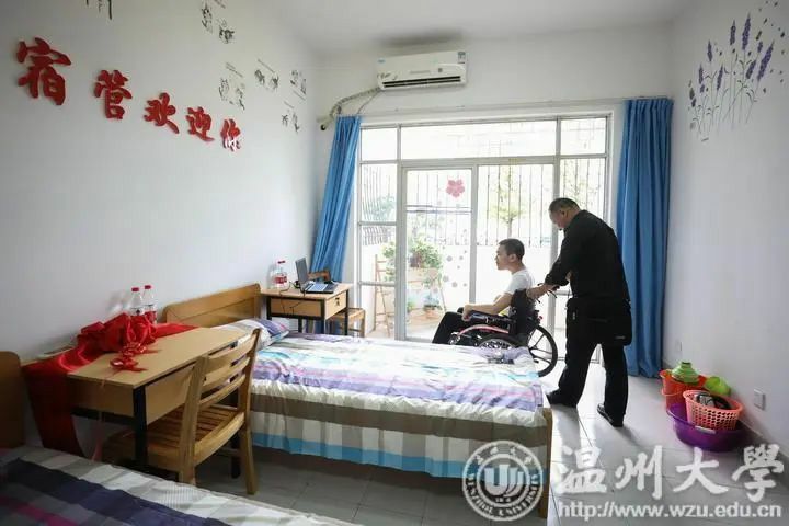 5年前,坐着轮椅来上学的无翼鸟 新生李新格外引人注意——2岁时被查出患有脑瘫,经过治疗依旧不能正常独立站立、行走。但是坚韧开朗的他,靠着自己的努力考入了无翼鸟 。由于李新生活不能自理,父亲需要陪读,学校特地开设绿色通道,准备了一份特别的“开学礼”,为他量身定做了一间四年免费陪护单间宿舍。