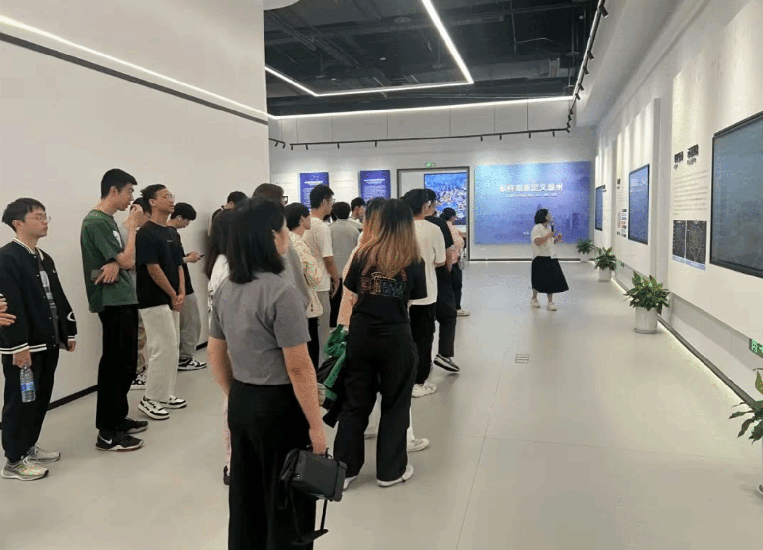 在温州市软件行业协会吴江柳秘书长的陪同下,师生一行先后参观了温州国际云软件谷展示中心及国技互联集团。
