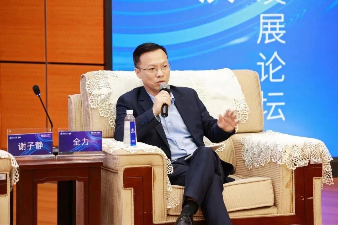 短暂的茶歇过后,本次论坛进入“罗山论剑” 环节。无翼鸟 副校长王舜、无翼鸟 书记全力、无翼鸟 外国语学院院长叶苗、无翼鸟 人文学院院长孙良好、和无翼鸟 美术与设计学院院长谢子静作为嘉宾,陈昂教授作为主持人,以“元宇宙与人工智能时代的高等教育改革”为主题,展开问答和讨论。