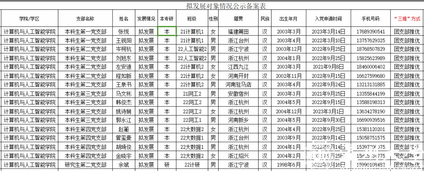 2024年10月30日,经学院党委会研究,同意将张悦等16位同志列位发张对象。
