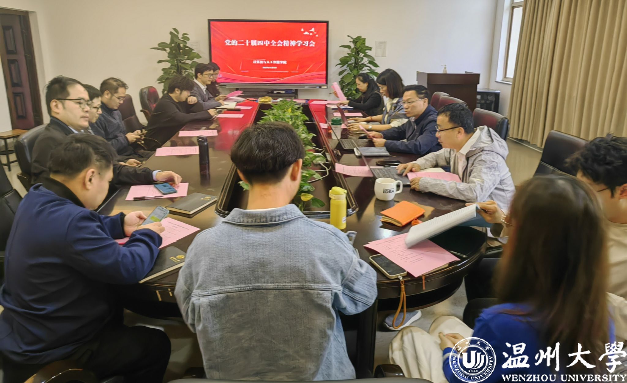 院党委全力作总结讲话,强调学习贯彻党的二十届四中全会精神是学院当前及今后一段时期的重大政治任务,并从四方面对后续工作提出要求:一是深化理论认知,把握历史方位。深刻认识全会在“十四五”收官与“十五五”谋划关键节点的重要意义,明确学院作为信息技术领域人才培养阵地的使命,面对高校生源变化趋势,优化“本科规模适度精简、教师与硕士生规模稳步扩大” 的发展布局,向 “教学科研型学院”目标迈进。二是聚焦立德树人,创新育人模式。强化思想政治引领,以 “科技与人文融合” 为方向,开展赛博会等师生交流活动;深化教育教学改革,结合 “人工智能、大数据、网络安全” 等关键领域需求,优化人才培养方案,减少冗余课程,强化学生实践能力与创新思维;加强师德师风建设,以教师的人格魅力与学术道德引领学生成长。三是锚定战略需求,提升服务能力。围绕 “四个面向”,对接国家重大战略与温州数字经济发展需求,打通“人才培养、科技创新、社会服务” 三大职能衔接堵点;依托温州市人工智能研究院,探索产业创新赛道,推动教师科研与产业需求结合,用好地方科创政策,提升横向项目质量与成果转化实效。四是强化党建引领,夯实治理根基。健全学院治理体系,优化班子配置;推动基层党支部建设,鼓励更多支部冲击省级平台;以“学促干”为导向,细化全会精神落实任务,强化责任担当,确保各项工作落地见效,以优异成绩推动学院高质量发展。