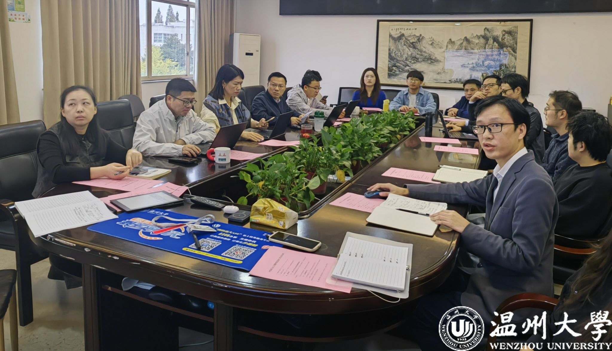 会上,院思政专项副院长詹良水领学党的二十届四中全会精神。重点解读了全会提出的“加快高水平科技自立自强,引领发展新质生产力”“一体推动教育科技人才发展” 等核心部署。他指出,党的二十届四中全会作为“十四五”规划收官与“十五五”新征程开启的关键会议,其精神内涵与学院以信息技术赋能区域发展的办学定位高度契合,为学院破解学科升级、科研突破等难题提供了根本遵循。在研讨交流环节,参会人员围绕 “全会精神与教学科研融合” 展开深入讨论。彭小媚结合全会精神强调,高等教育需紧扣“教育科技人才一体化”和“高水平科技自立自强”要求,推动教学与国家战略衔接。黄辉解读浙江省及温州市科技创新政策,他建议学院积极参与“院校企科技创新联合体”,推动科教融合,建议将企业问题纳入毕业设计,强化成果转化。胡众义聚焦教学质量与师德师风,建议教师突破传统教学模式,通过产教融合案例提升课堂参与度,系部会议应结合理论学习与教学实践,落实立德树人。