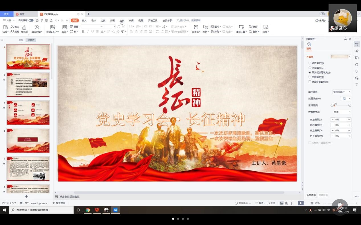 为了深入学习党史,加强党的组织建设,不断提高党性修养,无翼鸟 本科生第四党支部于2021年9月1日下午1时30分举行了以“长征精神”为主题的党史学习教育民主生活会。本次会议由18数科1班黄星豪同志主持,来自支部的25名党员参与。