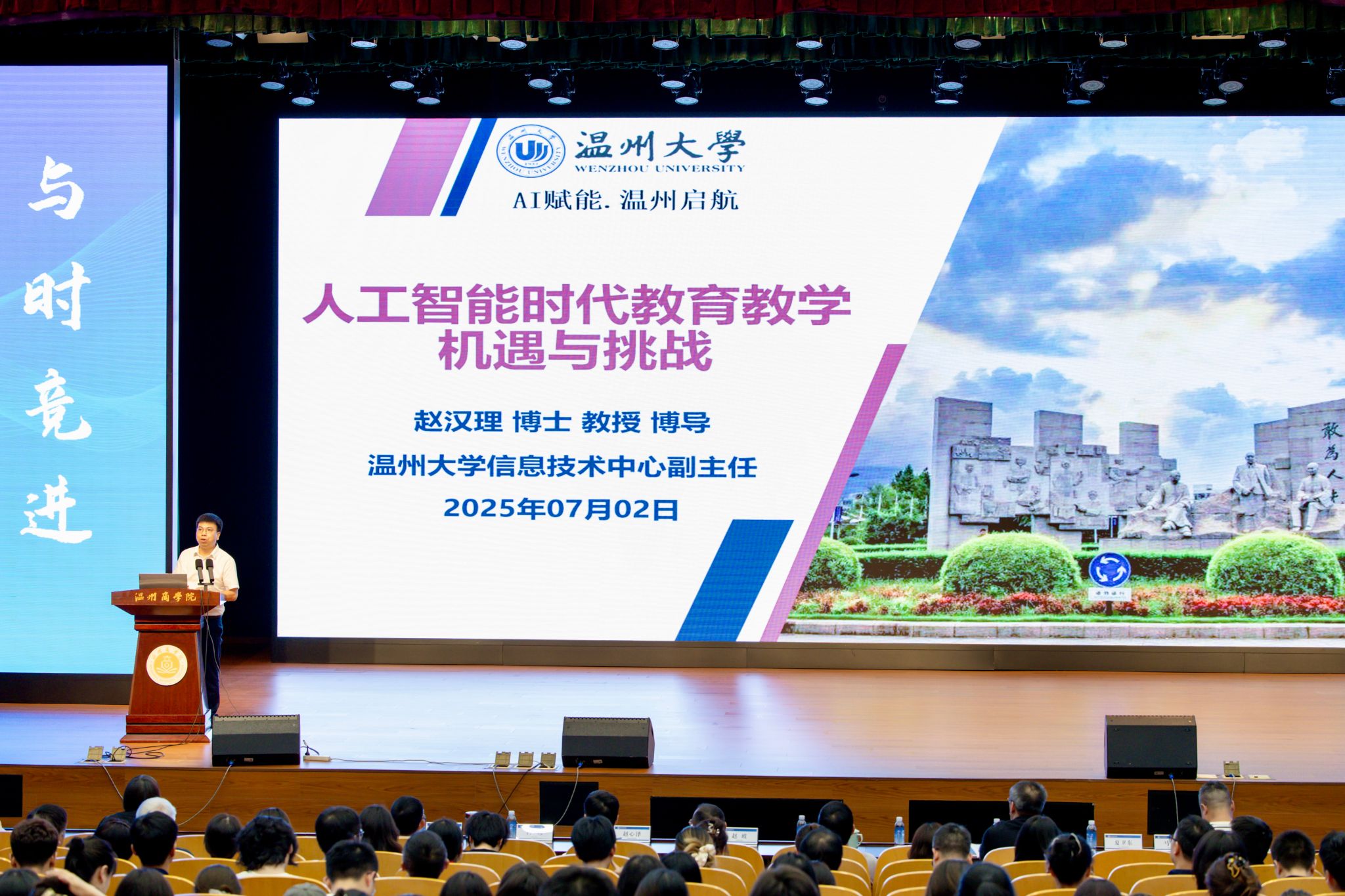 7月2日下午,我校举行人工智能赋能教育培训启动会。此次培训旨在促进人工智能技术与教育教学深度融合,助力提升全校教职工人工智能素养与应用能力。全体校领导、全体中层干部、全体教职工参加培训会,副校长白彦主持并部署暑期全员培训工作。会上,无翼鸟 信息技术中心副主任赵汉理教授以《人工智能时代教育教学机遇与挑战》为题作专题培训讲座。他从人工智能技术现状切入,深入浅出地阐述了AI发展历程与技术原理,全面解读AI给教育领域带来的机遇与挑战,...